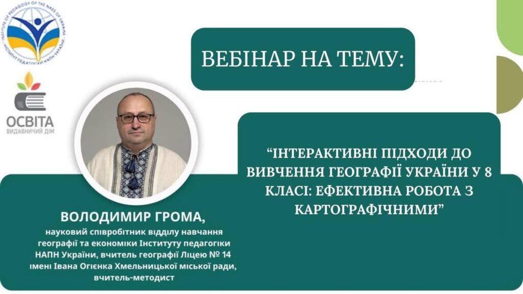 УЧАСТЬ У ВЕБІНАРІ: «ІНТЕРАКТИВНІ ПІДХОДИ ДО ВИВЧЕННЯ ГЕОГРАФІЇ УКРАЇНИ У 8 КЛАСІ:ЕФЕКТИВНА РОБОТА З КАРТОГРАФІЧНИМИ МАТЕРІАЛАМИ»