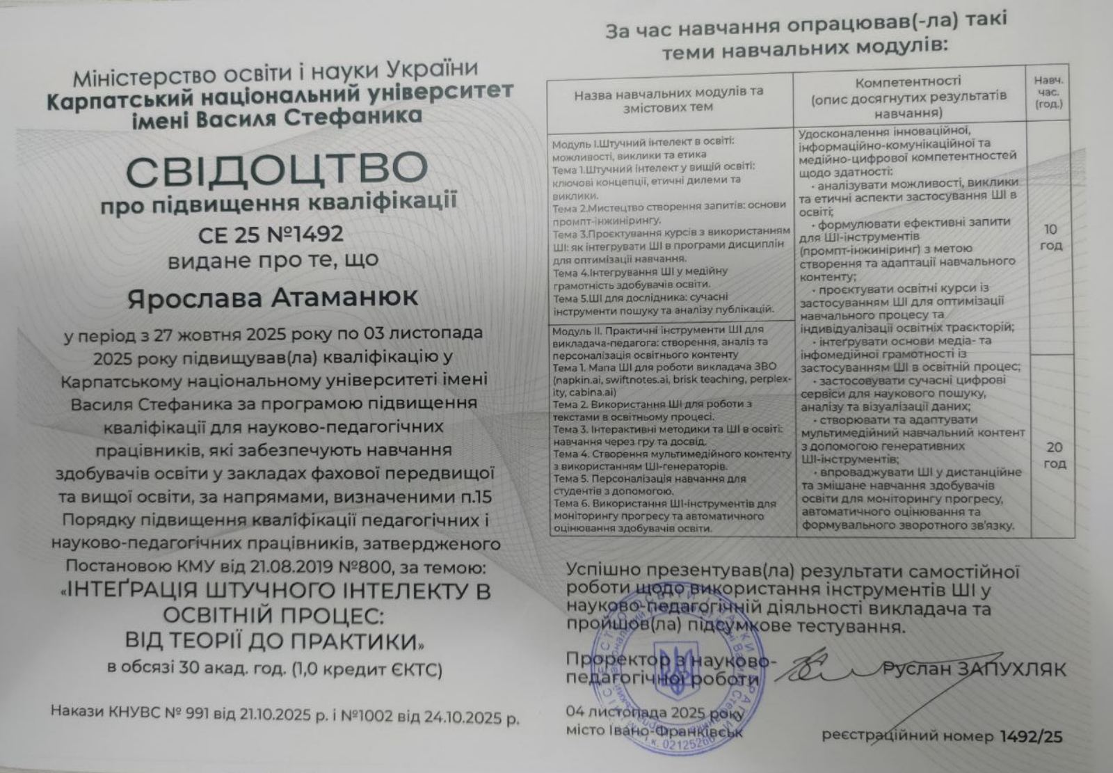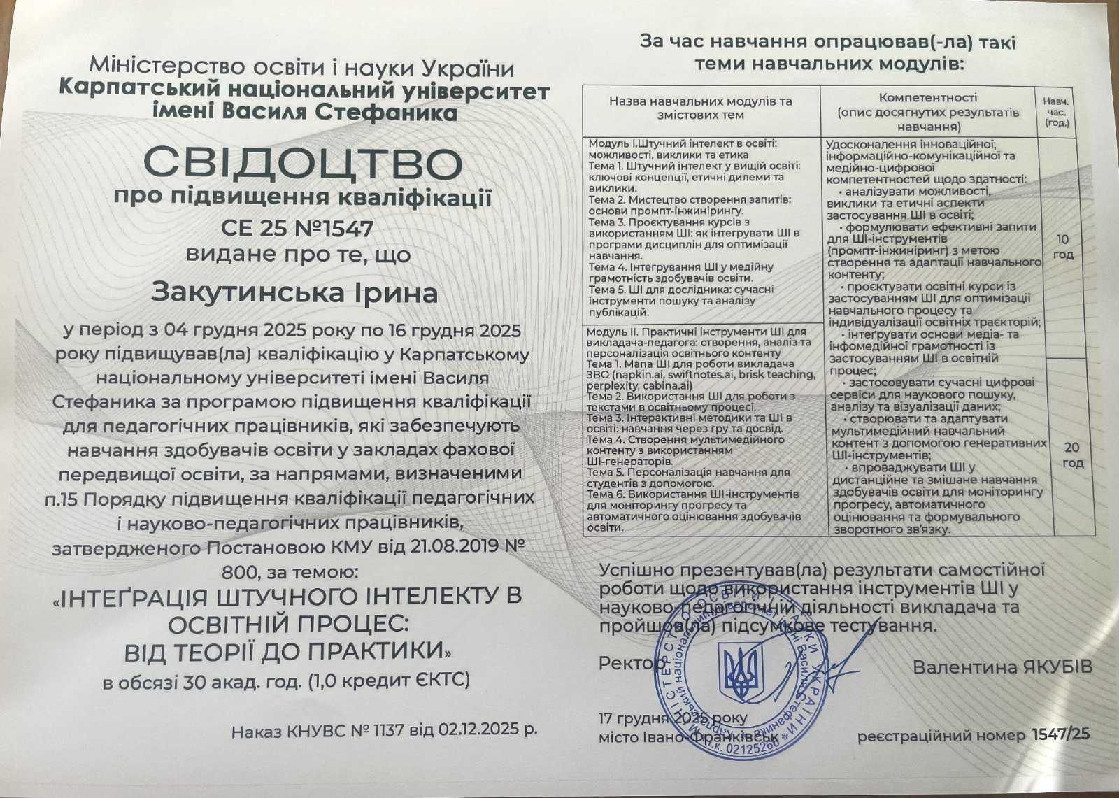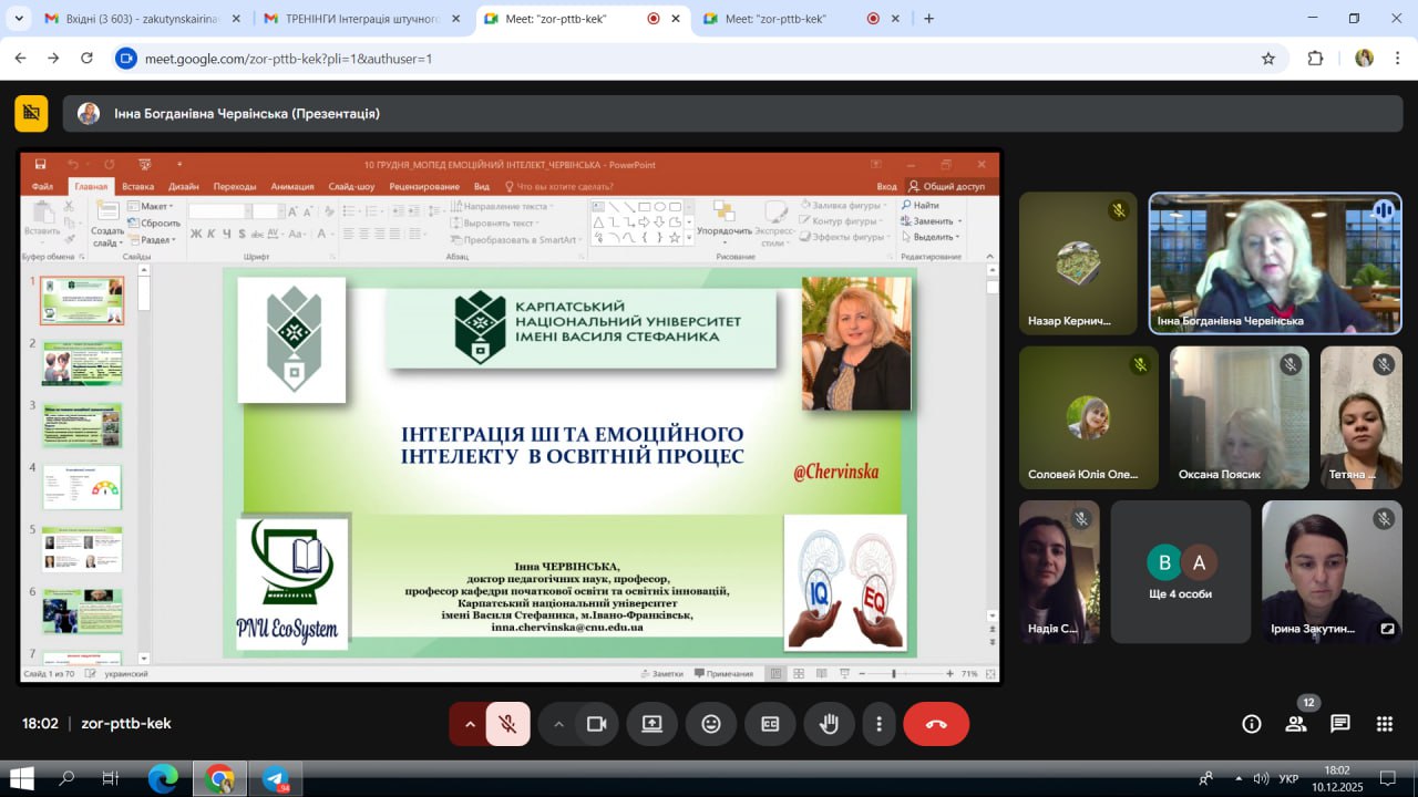 На базі Центру інноваційних освітніх технологій «PNU EcoSystem» Карпатського національного університету імені Василя Стефаника реалізовано програму підвищення кваліфікації для викладачів закладів вищої освіти на тему «Інтеграція штучного інтелекту в освітній процес: від теорії до практики».